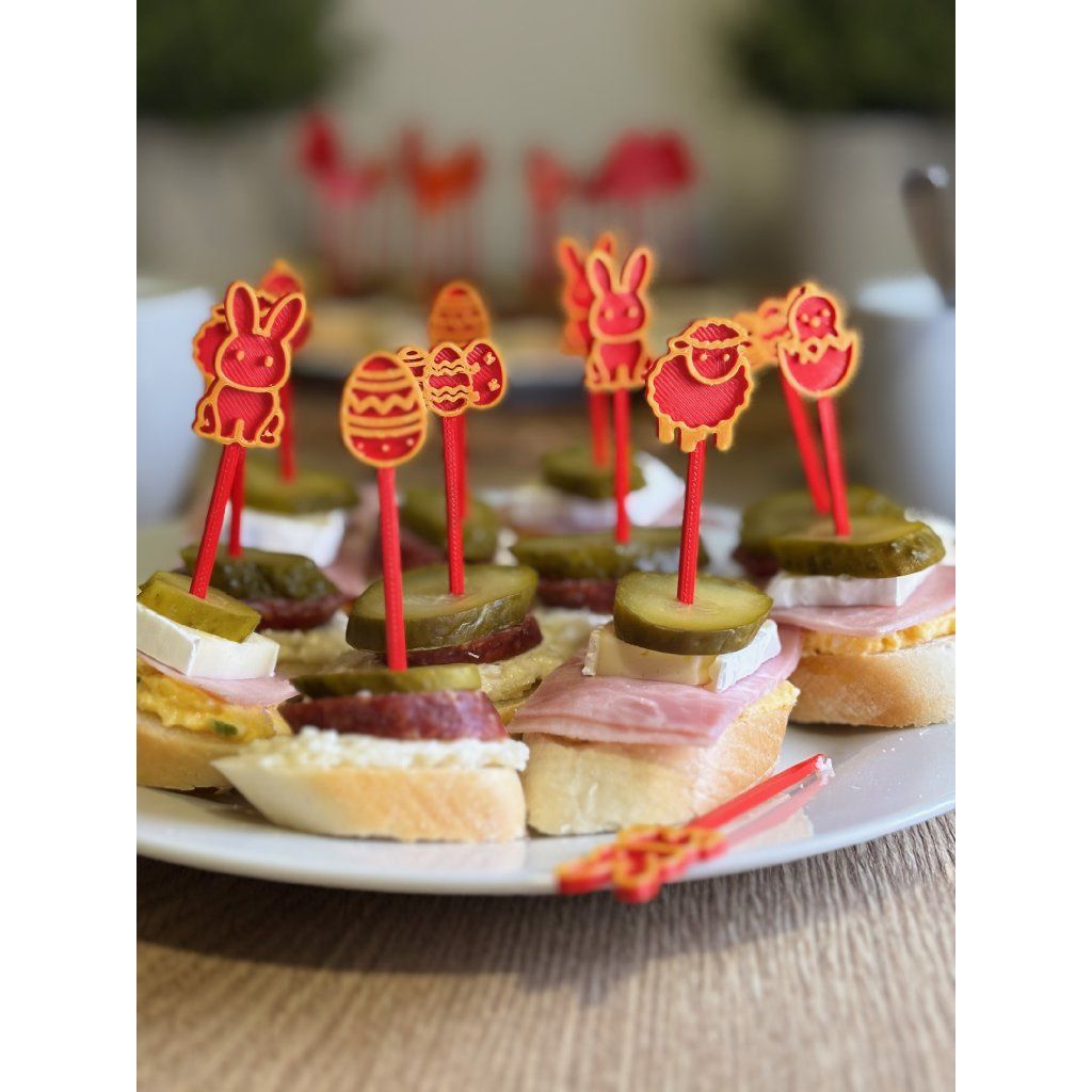 Hledáte originální detail, který rozzáří váš velikonoční bufet nebo slavnostní tabuli? Tyto roztomilé zápichy do jednohubek jsou přesně to pravé! Každý kousek okamžitě dodá pohoštění hravý a sváteční ráz.